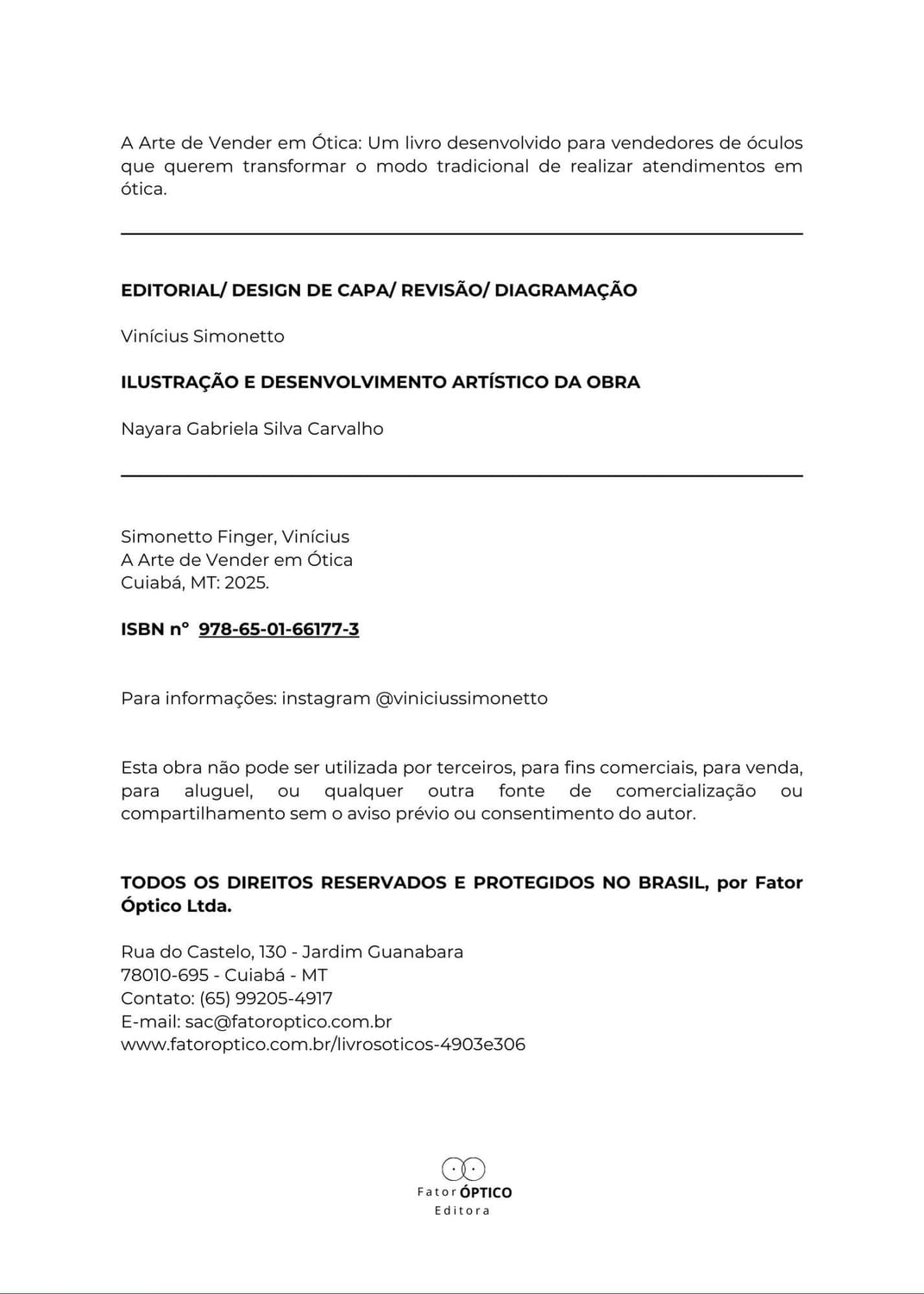ISENÇÃO DE RESPONSABILIDADE DE GANHOS: Não acreditamos em programas de "enriquecimento" - apenas em trabalho duro, agregando valor, construindo uma carreira real e profissional em ótica e servindo aos outros com excelência. Nenhuma das experiências e metodologias apresentadas nos livros devem ser interpretadas como promessa de resultados, dado que o desenvolvimento é um atributo individual e depende do esforço, desempenho, e dedicação de cada profissional.