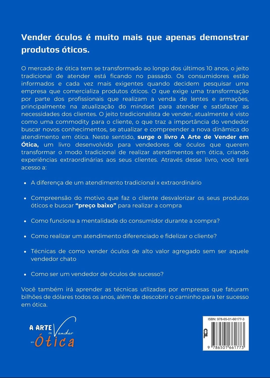 Eu criei o Livro A Arte de Vender em Ótica para ajudar vendedores ou consultores de ótica que estão começando sua jornada e querem se tornar especialistas nas vendas de óculos, e ainda querem atingir grandes resultados porque eu sei que é possível!
