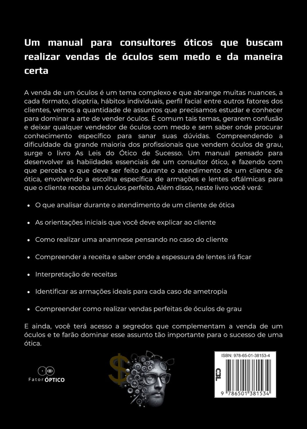 ISENÇÃO DE RESPONSABILIDADE DE GANHOS: Não acreditamos em programas de "enriquecimento" - apenas em trabalho duro, agregando valor, construindo uma carreira real e profissional em ótica e servindo aos outros com excelência. Nenhuma das experiências e metodologias apresentadas nos livros devem ser interpretadas como promessa de resultados, dado que o desenvolvimento é um atributo individual e depende do esforço, desempenho, e dedicação de cada profissional.